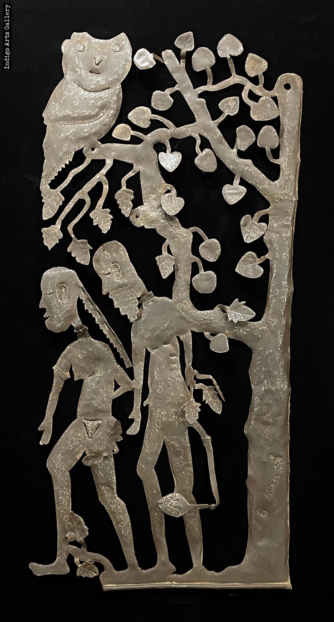Recycled steel oil-drum (35" h. x 16" w. x 2" d.),