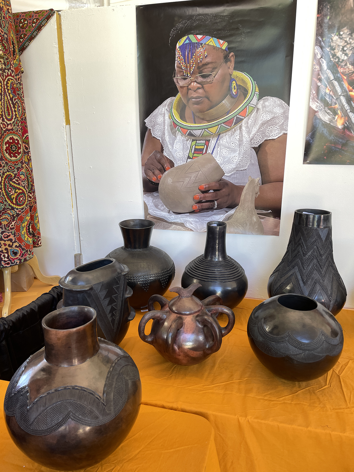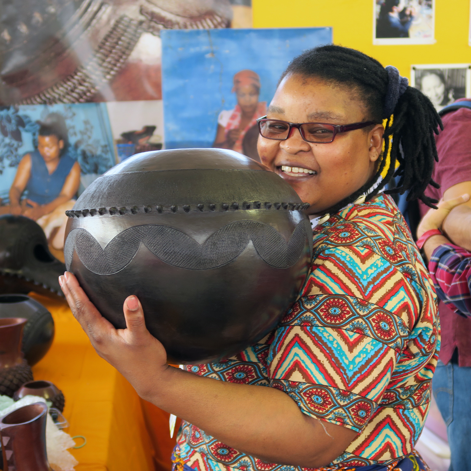 Hailing from one of the foremost families of Zulu ceramics, Jabulile Nala bears the memory of a line of female clay-workers that can be traced back to 1900. Born in Eshowe, KwaZulu-Natal, and rooted in the ceramic traditions of her mother, Nesta, and her grandmother, Simphiwe, Nala creates sculptural forms which spiral wildly from their origin point in the Zulu clay heritage, at once incorporating and defying traditions. Each work is a distinctive body, perhaps capped with a short protruding neck, or raised amasumpa, or banded design work. Nala digs for red and grey clays from two sites near her home. Her whole-body approach to nurturing her clay from harvest to fabulation is a profound contribution to the lineage of clay and the obscured archives of the women who came before her. Jabulile Nala has participated in numerous exhibitions in South Africa and abroad and her work is represented in both national and international private and public collections.