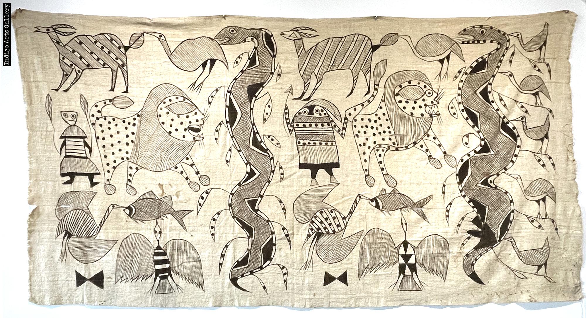 Design hand-painted with mineral pigment on hand-spun and strip-woven white cotton fabric by Senufo artists (approx. 58" x 110").