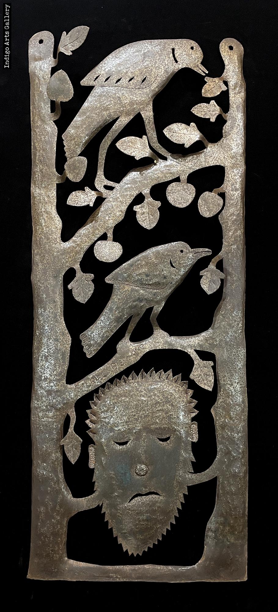 Recycled steel oil-drum (34" h. x 14" w. x 2" d.),