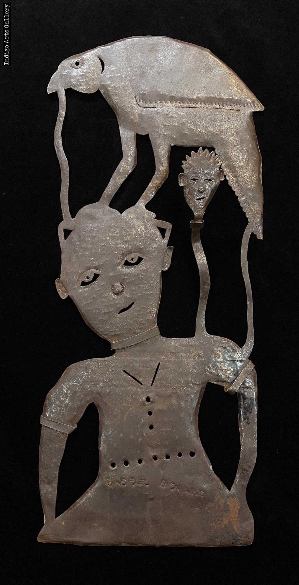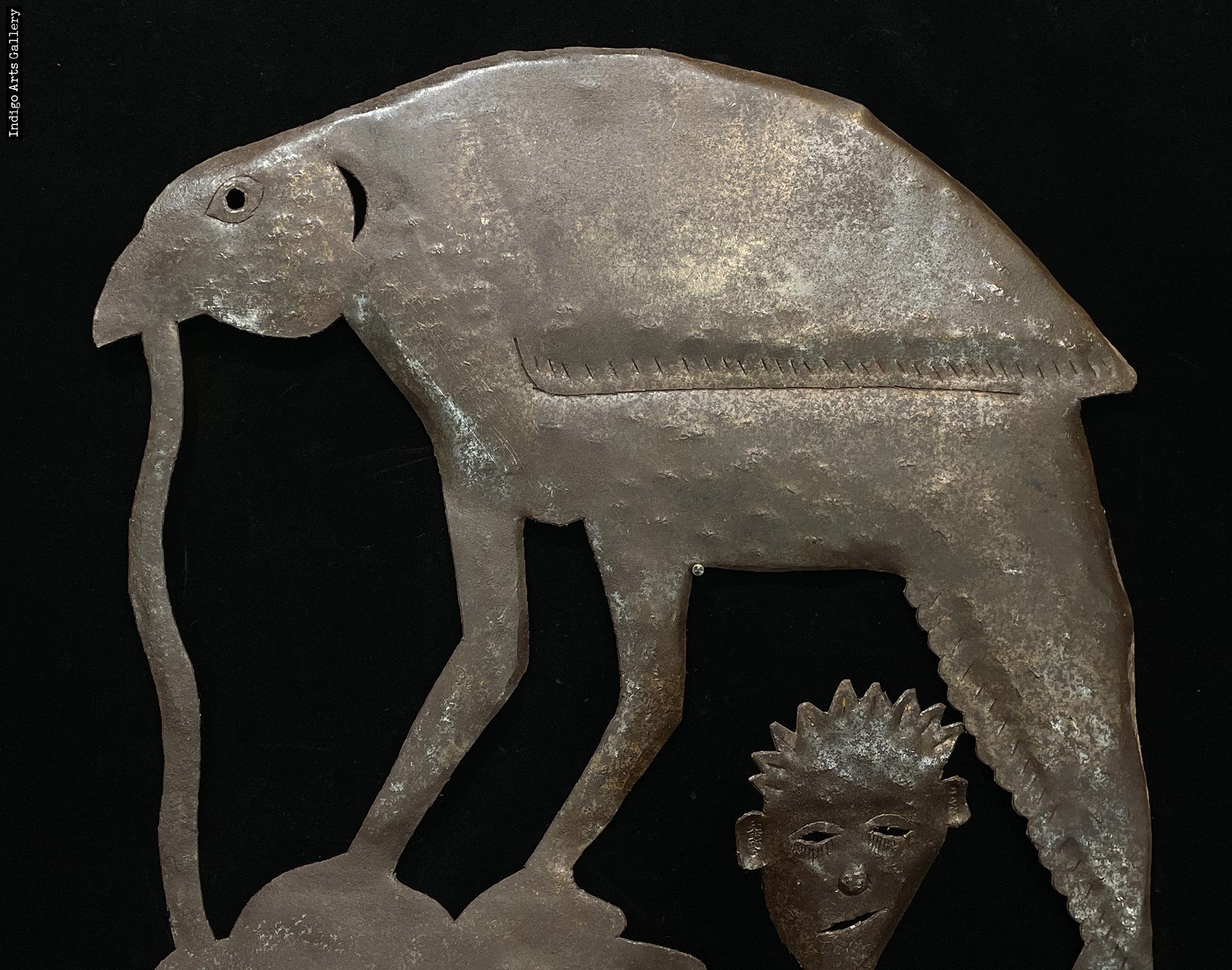 Recycled steel oil-drum (34" h. x 14" w. x 4" d.),