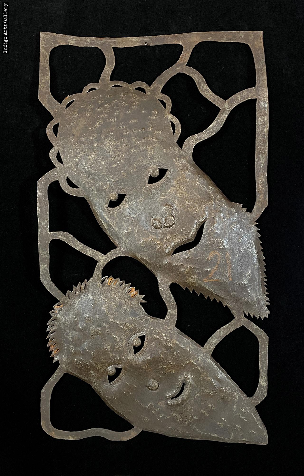 Recycled steel oil-drum (22” h. x 12.25” w. x 3” d.)