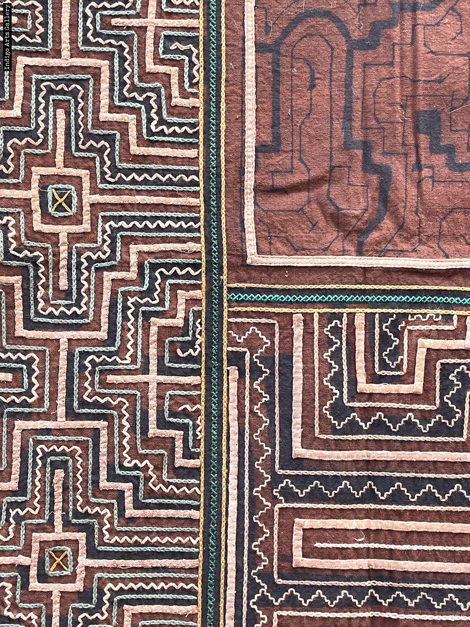 Cotton fabric with natural dyes and cotton embroidery design with hand drawn designs and both hand and machine stitching.