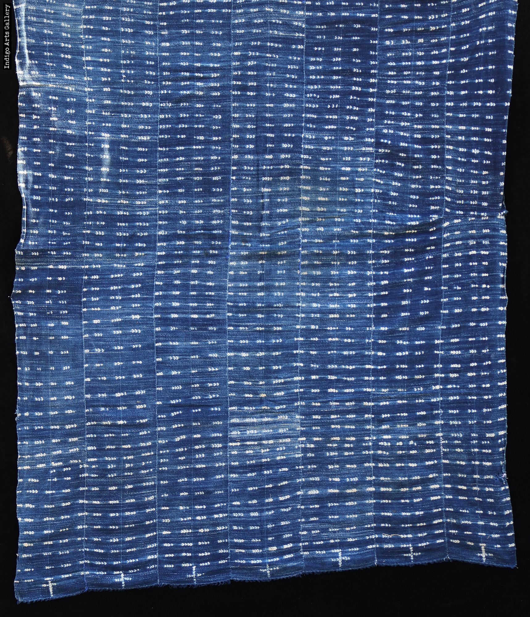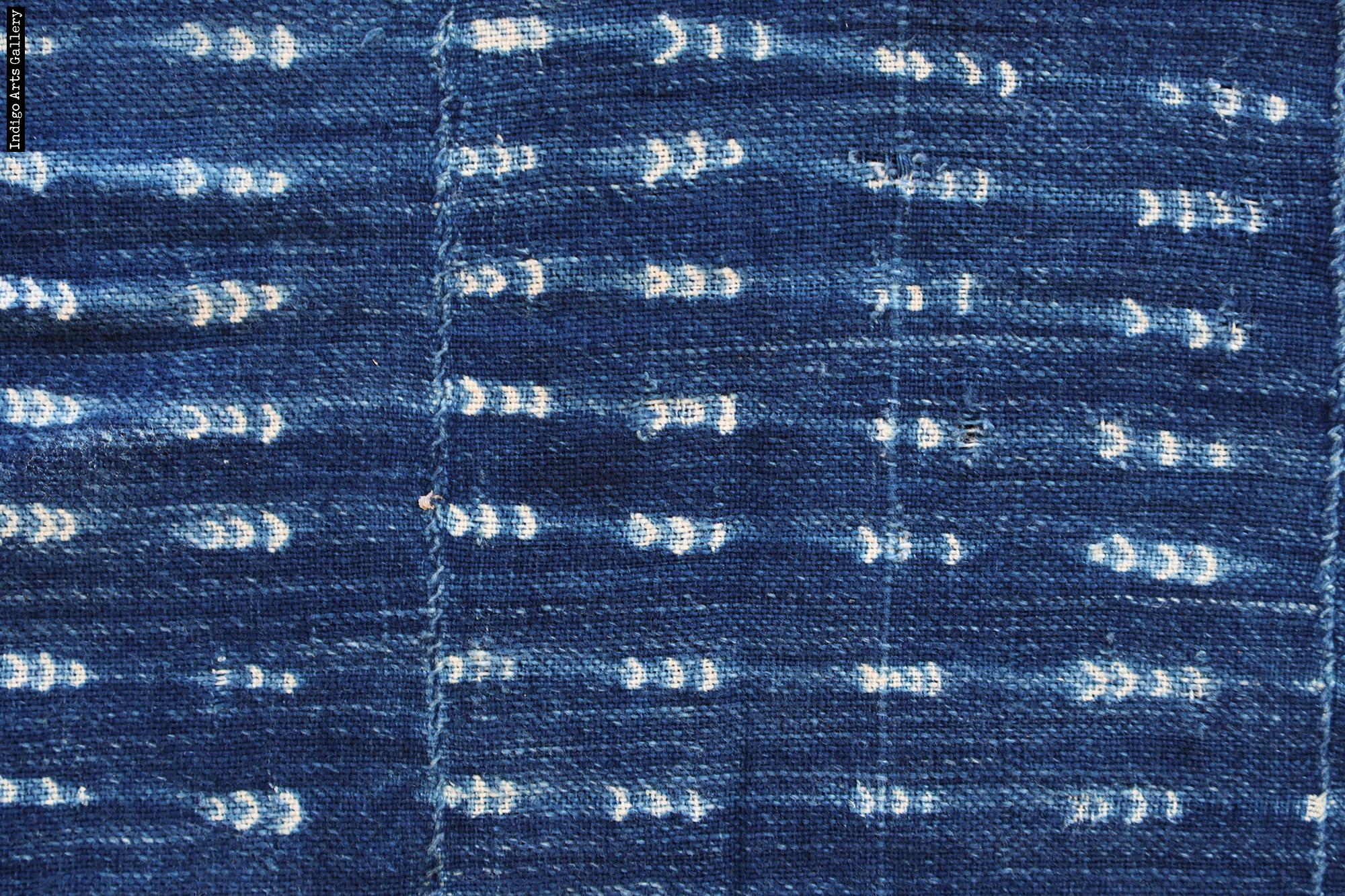 Antique Strip-weave cotton fabric resist-dyed with natural indigo dye. (53" x 39"). Some repairs, as shown.