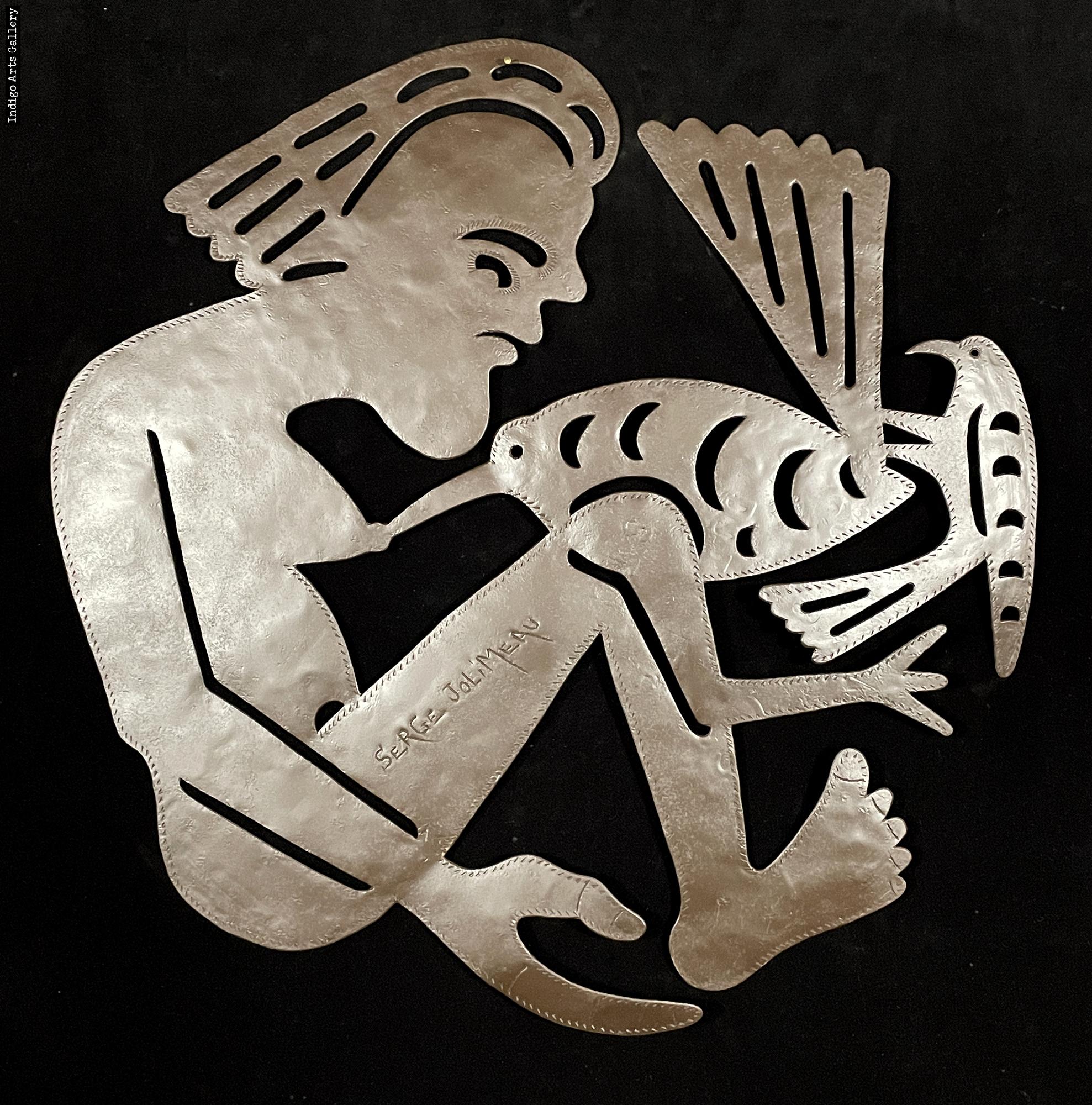 Recycled steel oil-drum sculpture, clear urethane finish.